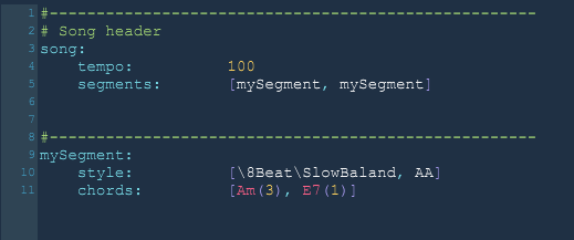 all based on YAML and it just adds a few simple rules to form the song. But the core syntax does not change.